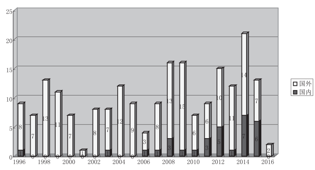 雖然從申請數量來看,中國申請量也位于前三, 然而,我國在低表面能有機硅防污涂料領域的研究起步較晚,與國際水平存在著較大差距,從圖 2 國內外申請逐年分布圖中可以看出,國內申請大多集中于 2007 年之后,而國外申請在 1996 年左右已有較大申請量,此外,國內申請大多集中于樹脂改性方向,保護范圍普遍較窄,作為一個有著遼闊海域的國家,在船舶防污涂料的需求日漸增長,而低表面能有機硅船舶防污涂料核心技術又大多為國外壟 斷的形勢下,急需加快防污涂料研發速度,提高國內企業行業競爭力。